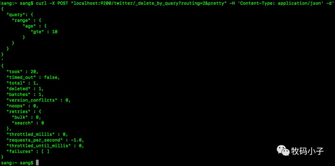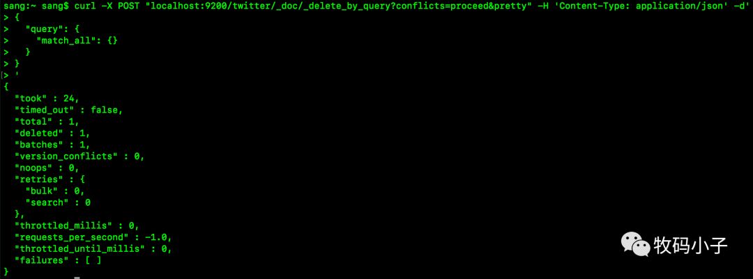 除了elasticsearch API约定(二)一文向读者介绍的公共参数如pretty之外, DeleteByQueryAPI还支持 refresh、 wait_for_completion、 wait_for_active_shards、 timeout以及 requests_per_second。