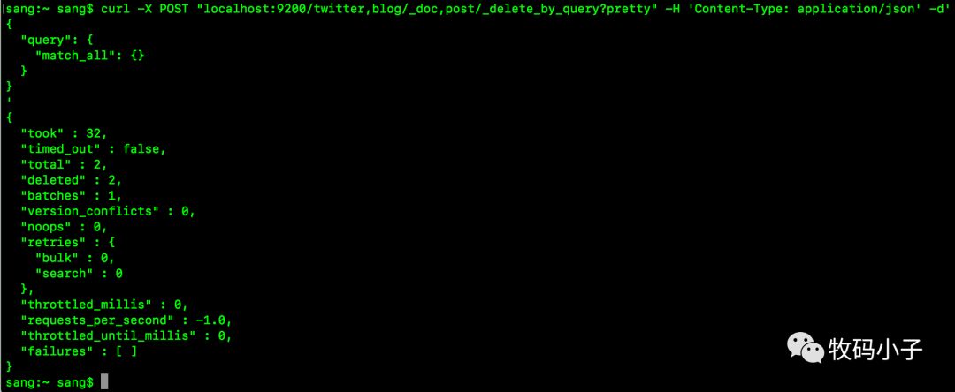 这里最简单的用法是对每个查询匹配的文档执行删除文档,例如下面这样: