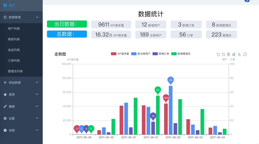 本项目是后台管理框架,集成了权限管理、登录功能、UI组件、七牛上传等功能,可以直接使用,所有数据请求都是用了mockjs模拟。在需要请求外部api时请移除mock文件。