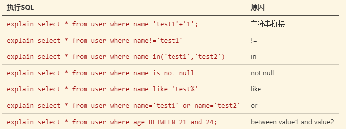 在使用 in 时,如果只有一个值,则等价于使用 =符号,会触发索引,包含两个或多个值,则索引失效。