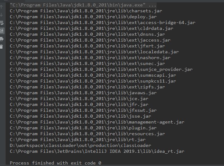 } 这段代码我们可以看到类加载器的父子关系, APPClassLoader->ExtClassLoader->BoostrapClassLoader , 但是 BoostrapClassLoader 无法显示的获取到,只能看到是个 null 。