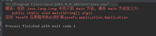 } 运行自定义 Long 类中 main 方法 报错如下: