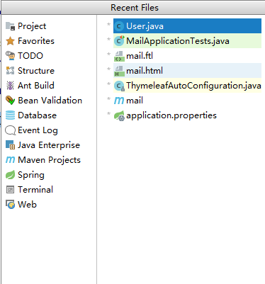 IDEA 提供了丰富的导航查看模式,例如 Ctrll+E 显示最近打开过的文件: