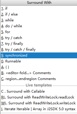 这是系统自带的,按下 Ctrll+J,然后点击右上角的小灯泡,我们也可以自定义代码模板。