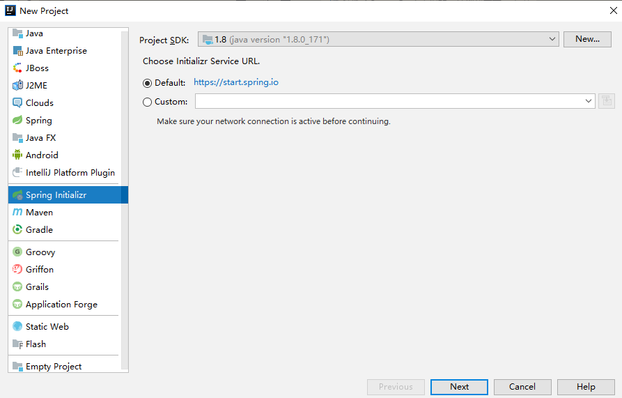首先在创建项目时选择 Spring Initializr,如下图:
