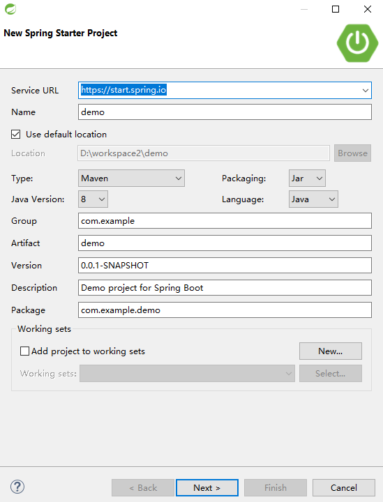 这里我再介绍下 Eclipse 派系的 STS 给大家参考, STS 创建 Spring Boot 项目,实际上也是从上一小节的那个网站上来的,步骤如下: