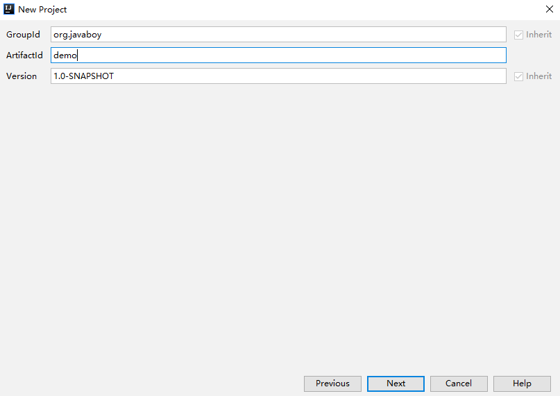 注意这里不用选择项目骨架(如果大伙是做练习的话,也可以去尝试选择一下,这里大概有十来个 Spring Boot 相关的项目骨架),直接点击 Next ,下一步中填入一个 Maven 项目的基本信息,如下图:
