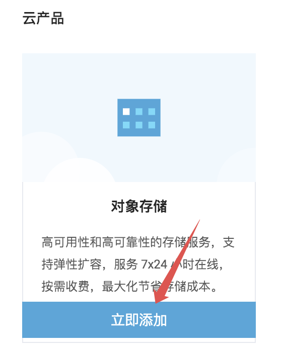 首先在七牛云网站首页点击 管理控制台 进入到管理控制台页面,然后选择第一个对象存储,点击立即添加。