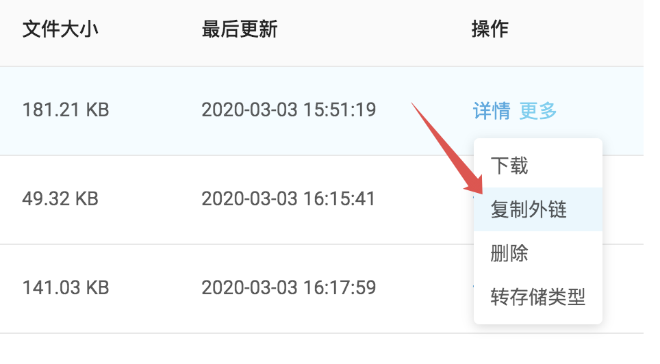 接下来点到 空间管理->空间概览 ,点击文件上传,就可以上传文件了。文件上传成功后,点击右边的更多,就可以复制文件链接了。
