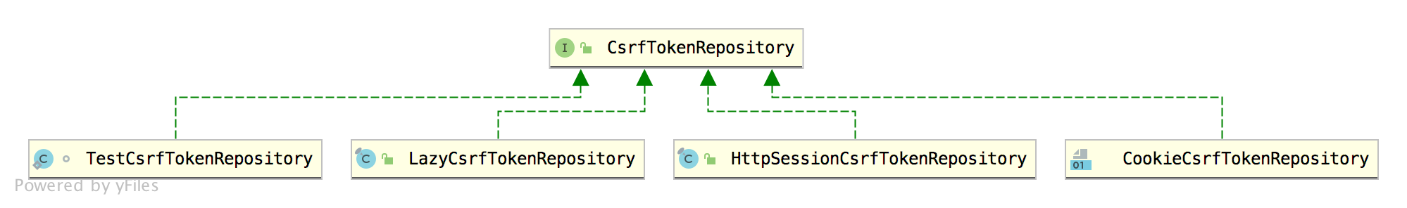 CsrfToken 相当于就是 _csrf 参数的载体。那么参数是如何生成和保存的呢?这涉及到另外一个类: