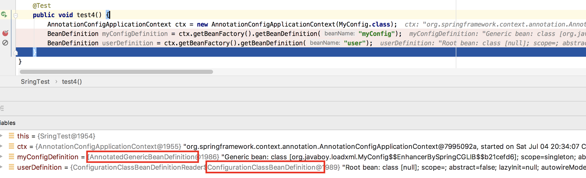 现在 Spring Boot 广泛流行之后,Java 配置使用越来越多,以 @Configuration 注解标记配置类会被解析为 AnnotatedGenericBeanDefinition;以 @Bean 注解标记的 Bean 会被解析为 ConfigurationClassBeanDefinition。
