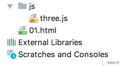 创建一个普通项目,将下载到的threejs中的build/three.js文件拷贝到项目中,然后在项目中创建一个html页面,如下: