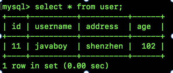 首先在 A 会话中查看当前 user 表,查看完成后开启事务: