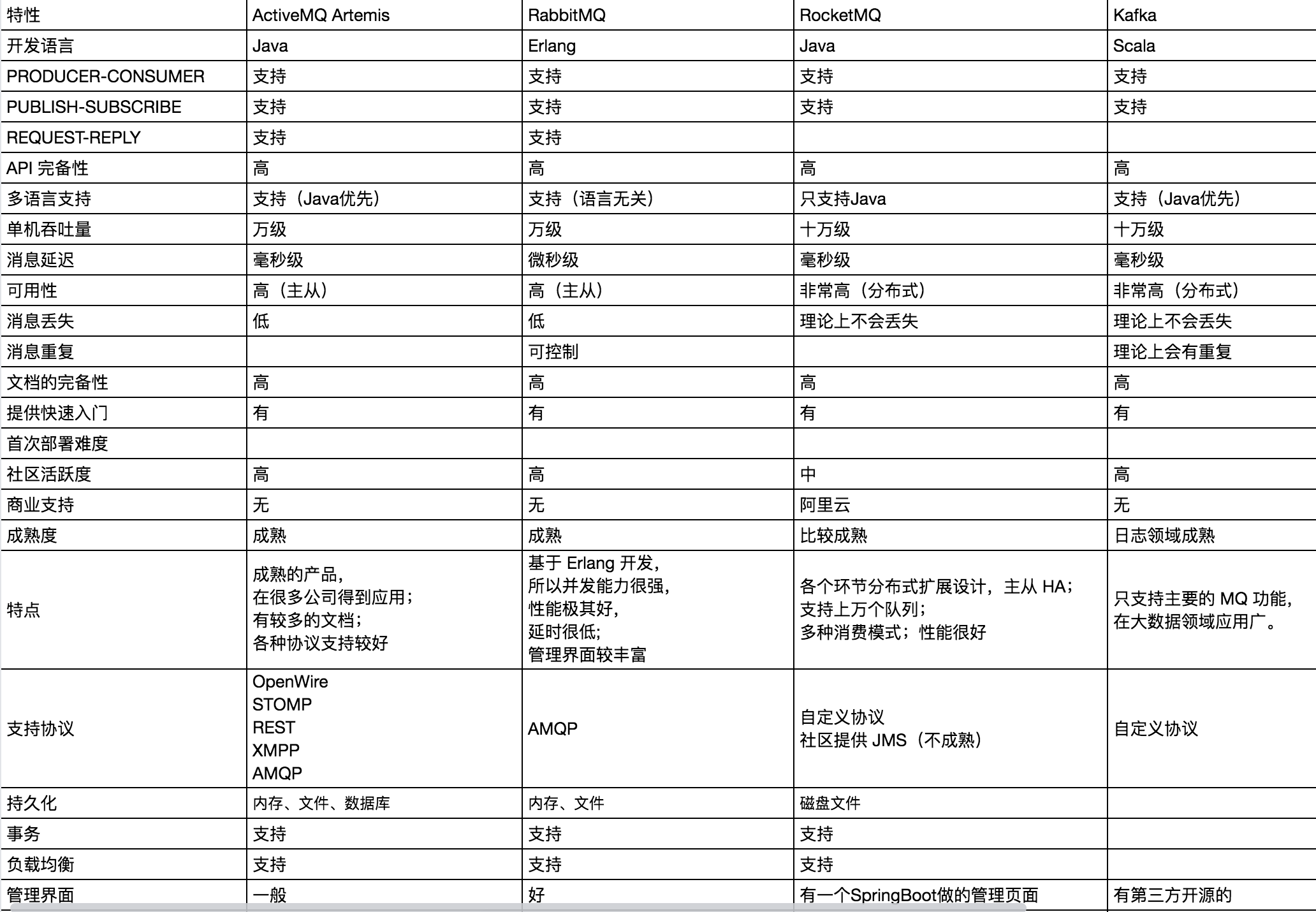 这里有不少是松哥考古挖掘出来的,其实对于我们日常开发接触较多的,可能就是 Kafka 和 ActiveMQ。