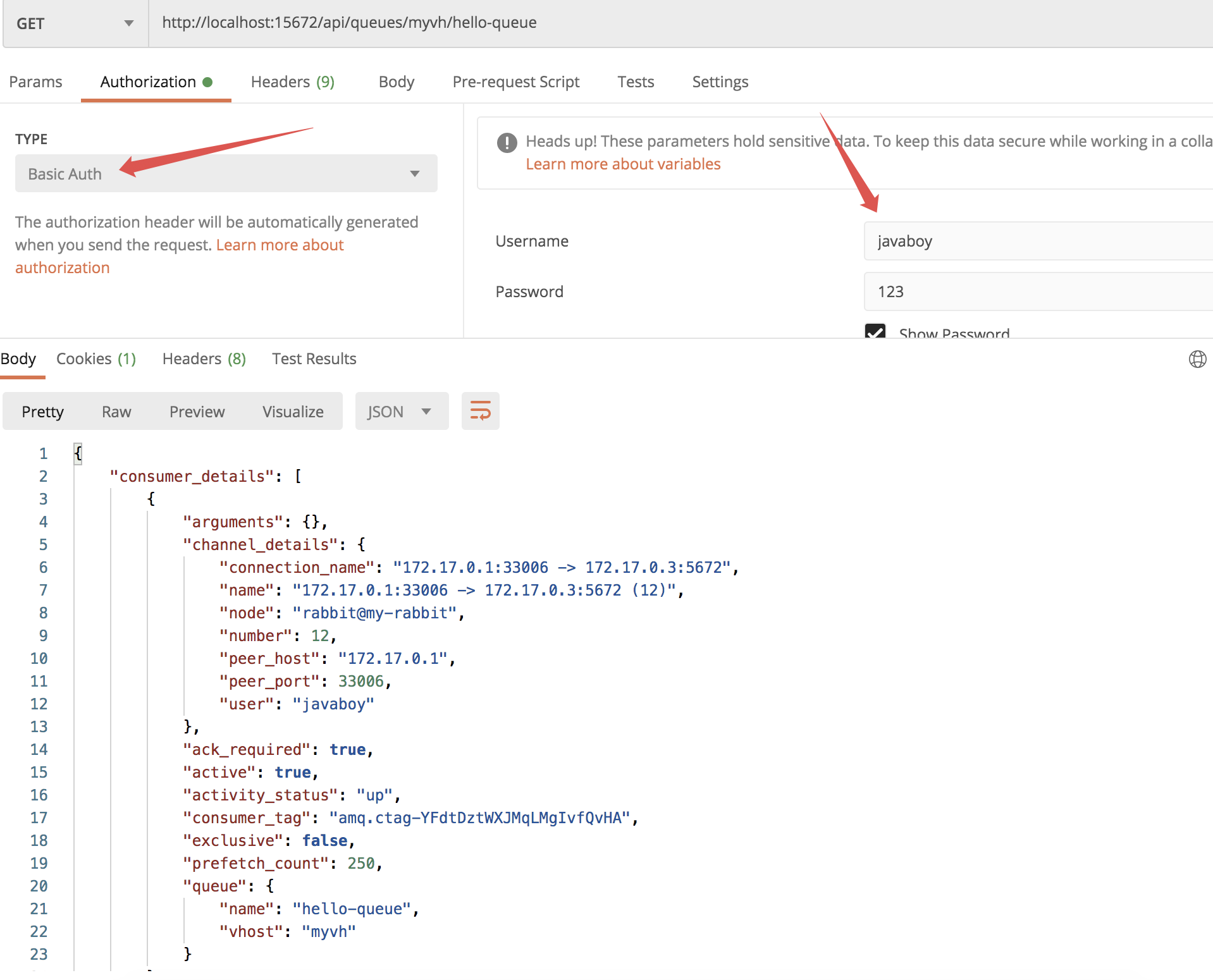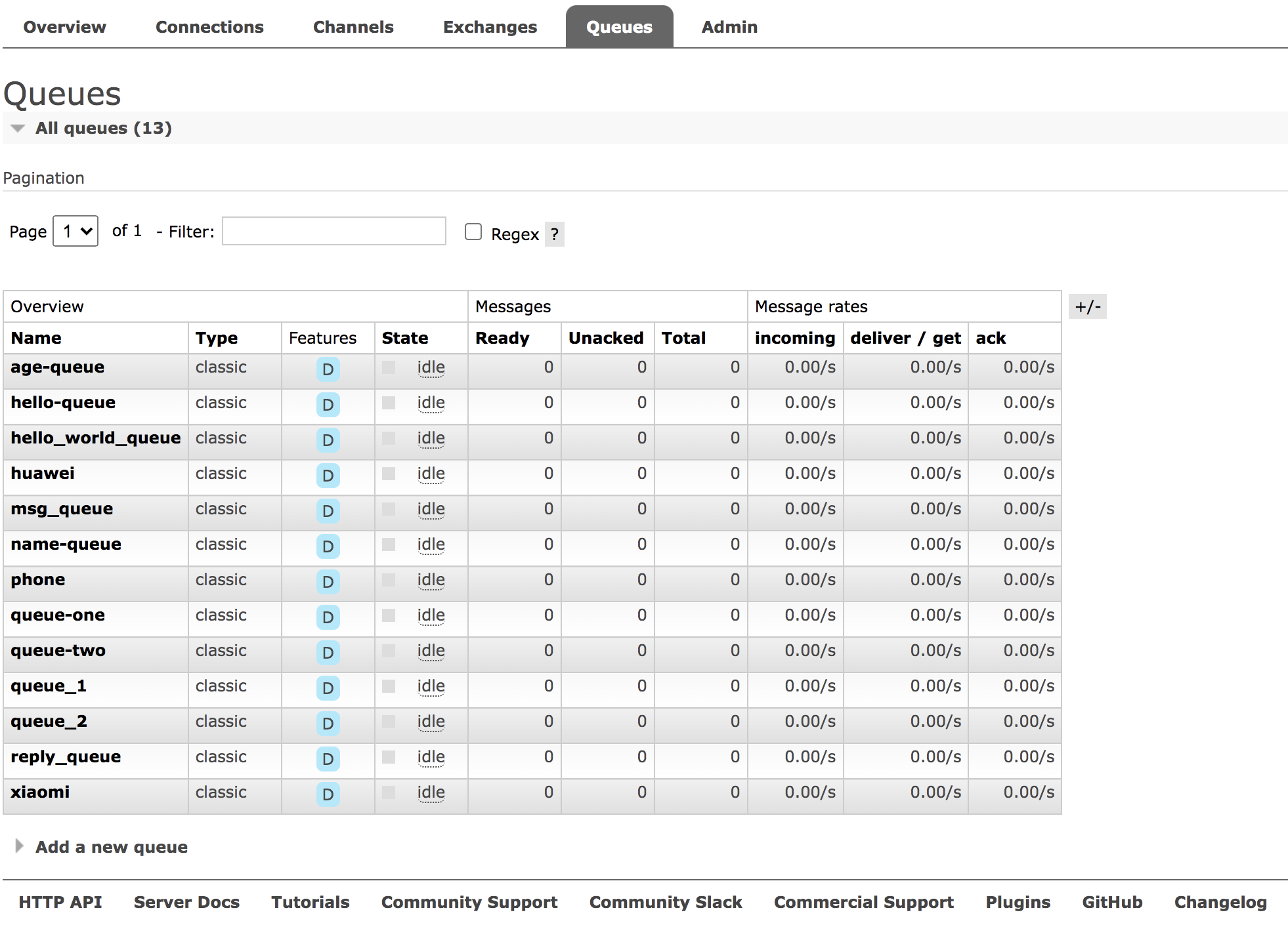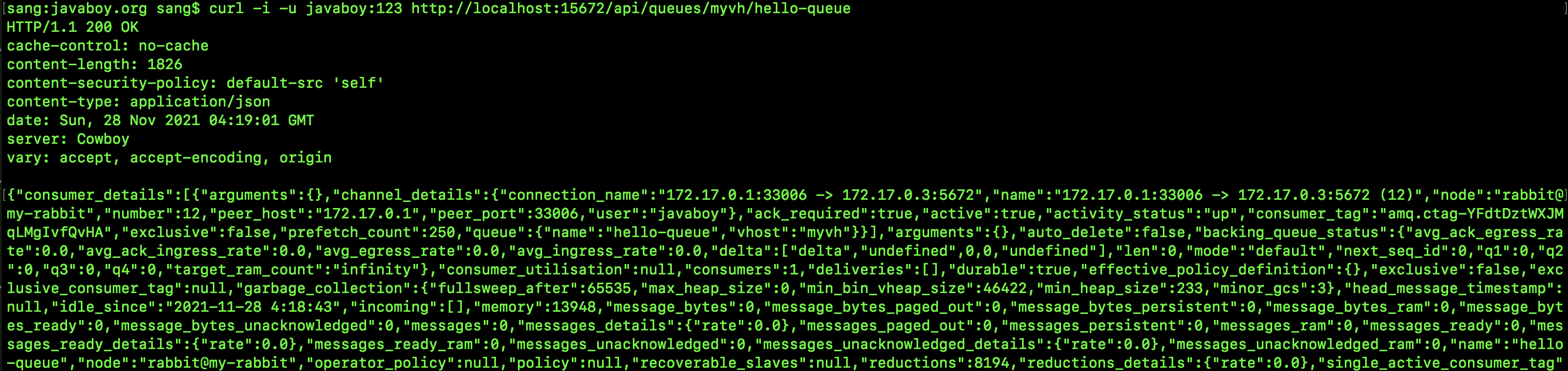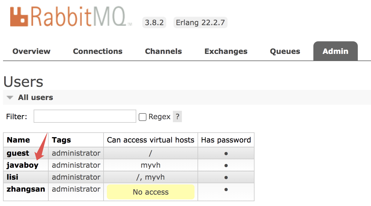 接下来松哥再举两个反例,以证明消息并没有同步到其他 RabbitMQ 实例。