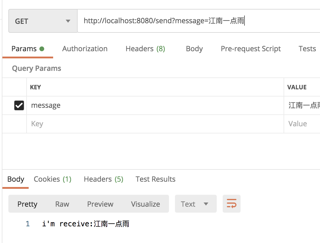 rabbitTemplate.convertAndSend(null, RabbitConfig.MY_QUEUE_NAME, "hello 江南一点雨");