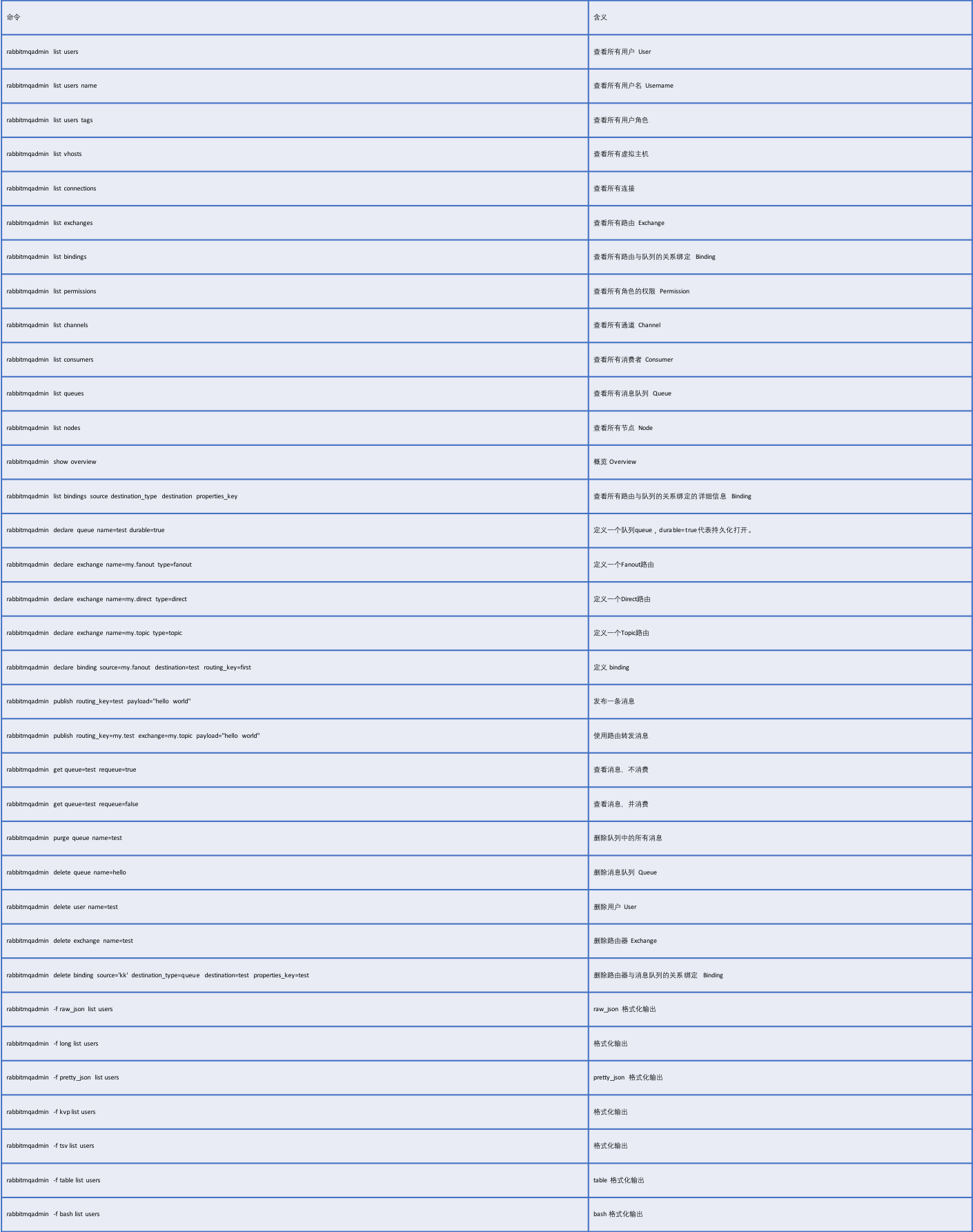 - Exchange: Message 到达 Broker 的第一站,根据分发规则,匹配查询表中的 routing key,分发消息到 queue 中去。常用的类型有:direct (点对点), topic(发布订阅) 以及 fanout (广播)。