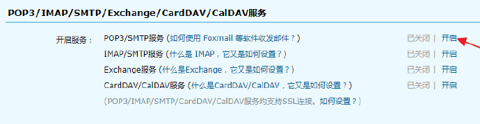 在账户选项卡中找到开启POP3/SMTP选项,如下: