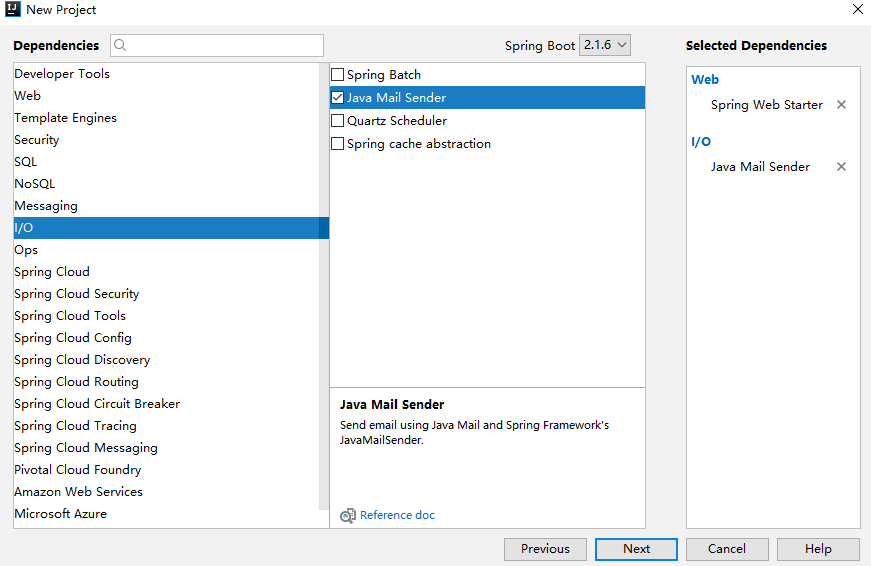 - 首先创建一个 Spring Boot 项目,引入邮件发送依赖: