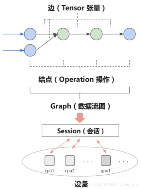 Tensor与Tensor之间可能有各种数学运算,所有的Tensor运算结构就是一张Graph,而Session负责和设备交互