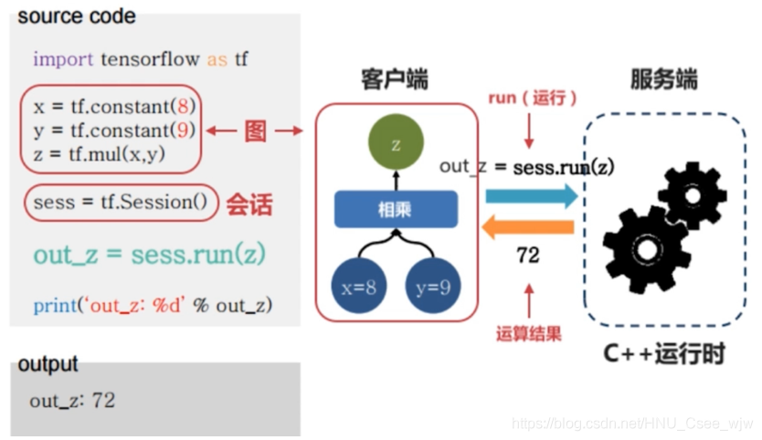 张量就像导管中流动的气体,操作就像是“加热、搅拌”等等。会话(Session)的作用是将图的某一部分运行起来
