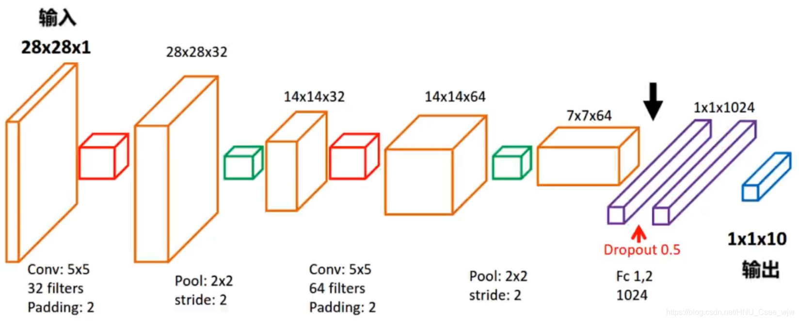 ) # 形状[14, 14, 64] 第二卷积层之后的第二池化层定义如下: