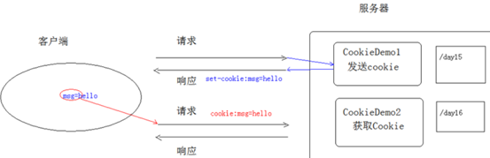 服务器上部署了两个Servlet程序CookieDemo1.java和CookieDemo2.java,姑且简称为CD1和CD2吧,CD1程序中有发送cookie的代码,CD2程序中有获取cookie的代码,当你打开浏览器访问CD1之后,服务器就会将响应头中set-cookie字段通过键值对的形式进行设置,再次在浏览器中访问CD2时,请求头中cookie字段就会包含刚刚设置的cookie信息(实际上,不管你是否有获取cookie的代码,这里的请求头中都包含这一信息),于是乎服务器就可以知道你究竟是哪一位小朋友了~