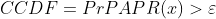 可将 PAPR 看作是随机变量,通常用互补累积 分布函数(CCDF)来表征峰均比的统计分布特性,定义为PAPR大于某个门限ε的概率。