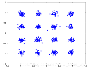 F-OFDM接收信号的星座图如图6所示,并计算在信噪比为18dB时误码率为0.00041667。