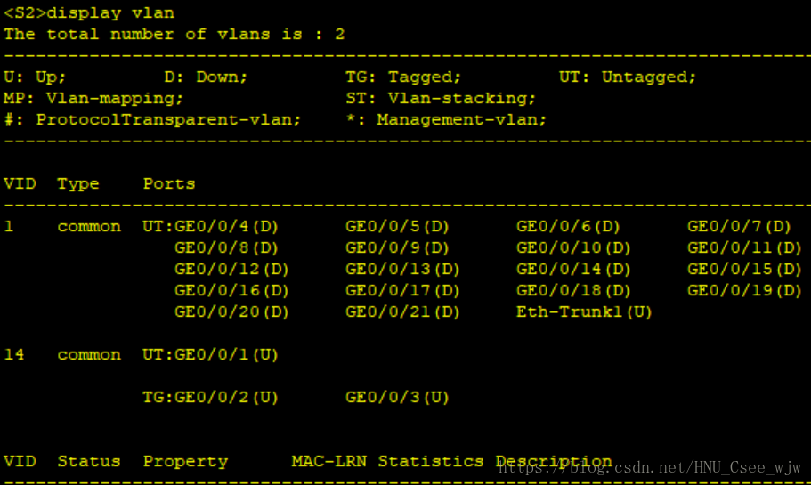 [S2-GigabitEthernet0/0/2]undo port trunk allow-pass vlan 1