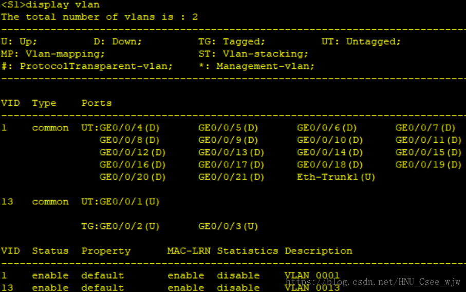[S1-GigabitEthernet0/0/2]port trunk allow-pass vlan all