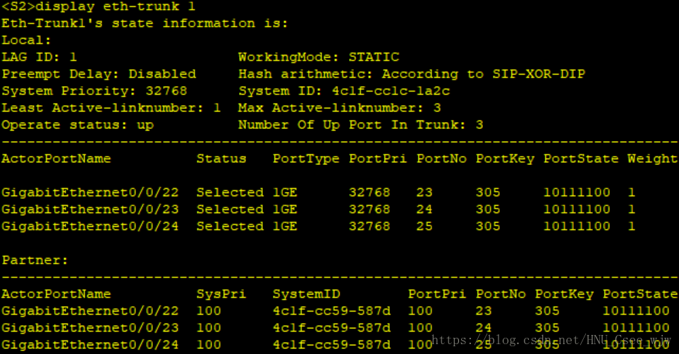 [S2-Eth-Trunk1]trunkport GigabitEthernet 0/0/22 to 0/0/24
