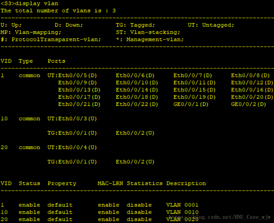 [S3-Ethernet0/0/1]port trunk allow-pass vlan all