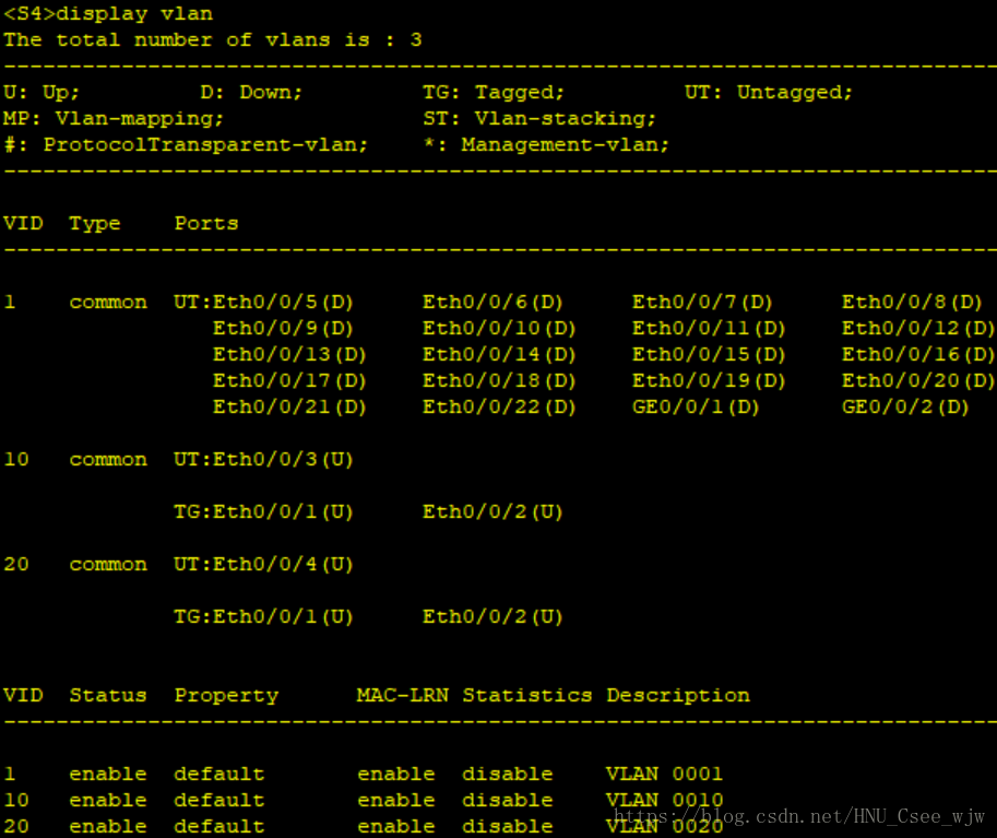 [S4-Ethernet0/0/1]port trunk allow-pass vlan all