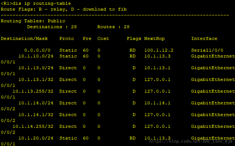 ip route-static 0.0.0.0 0.0.0.0 GigabitEthernet0/0/1