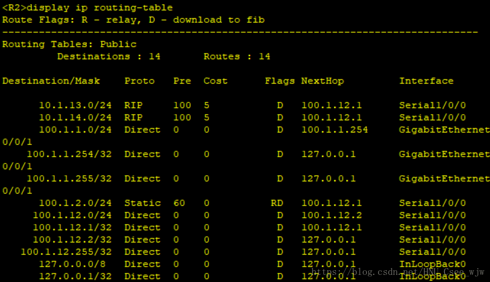 ip route-static 100.1.12.0 255.255.255.0 10.1.14.1