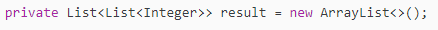 private List<List<Integer>> result = new ArrayList<>();