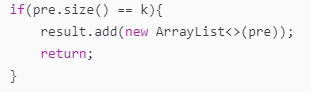 } 这一部分就是递归出口(可以结合题意理解,我们只要找到k个数字就好)