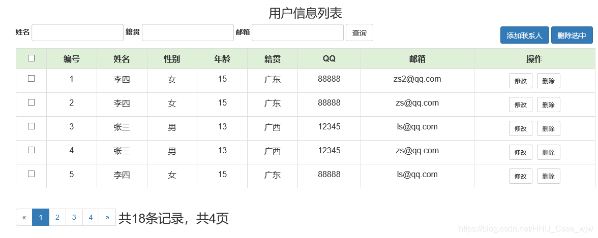 将MySQL数据库中存储的信息展示在网页端,实现分页显示,支持添加联系人,删除单个/多个联系人,修改联系人信息,条件查询的功能。内置管理员登陆操作,可供后续继续开发使用。