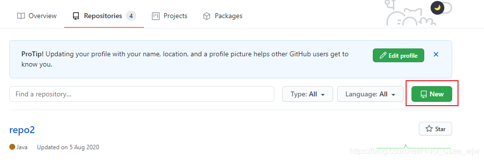 打开gtihb并创建一个仓库: