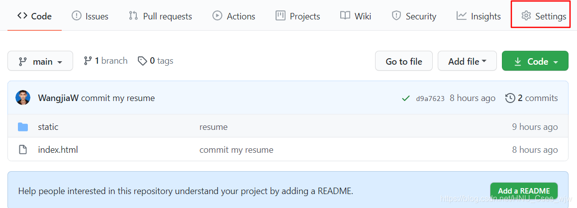 在你的仓库中选择Settings