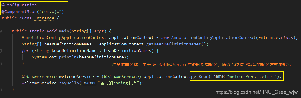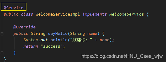 此外还可以使用另一种注释的方式,来保证启动时将WelcomeServiceImpl的实例加载到容器里: