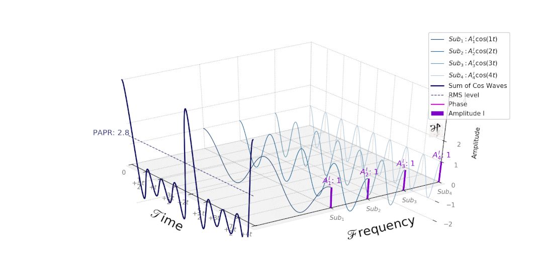但如果我的声音很粗犷,你的声音比较清脆的话,旁人还是可以分得清不同的音色的,OFDM就是类似这种现象,通过数学工具计算,得到了一种叠加信号发送的方式,这些信号又不会互相干扰,相当于同样的时间内发送的数据成倍被增加了。