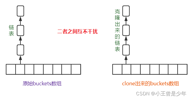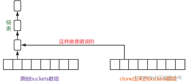 为了解决这个问题,必须单独拷贝buckets每个位置的链表: