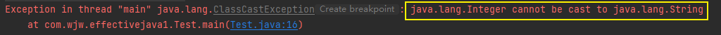 如果运行该程序,则当程序尝试调用strings.get(0)的结果(一个Integer)转换为一个String 时,会得到ClassCastException 异常。