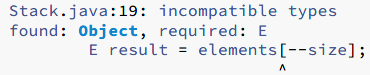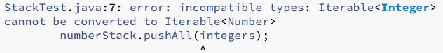 从这个声明中,编译器知道stamps 集合应该只包含Stamp 实例,错误的插入会生成一个编译时错误消息,提醒具体是哪里出错了: