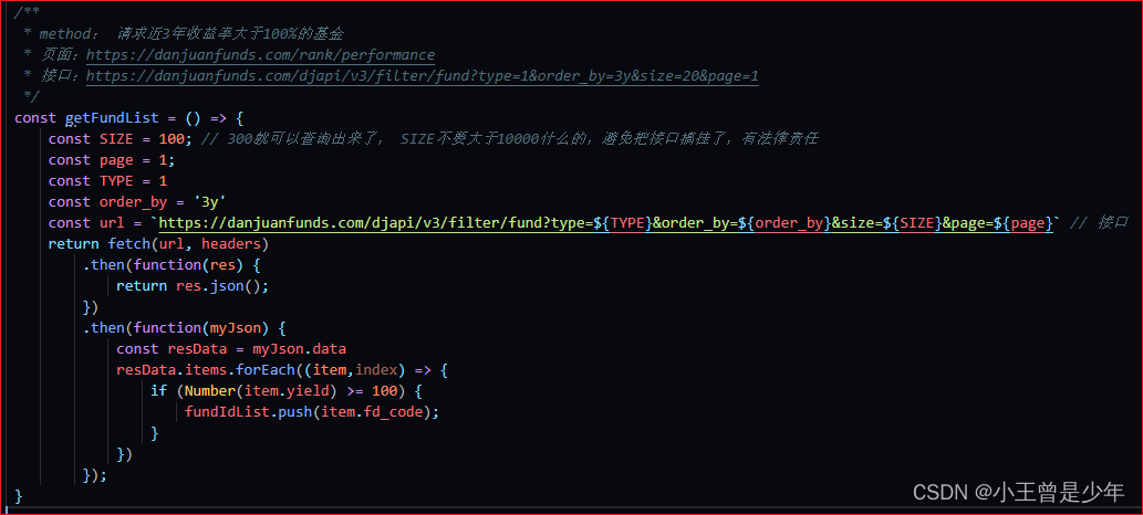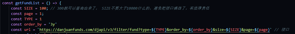 有了上面那些方法之后,我们就可以一直请求接口来获取每一个基金的详情了,并按照我们最开始定义的好基金的标准来进行过滤: