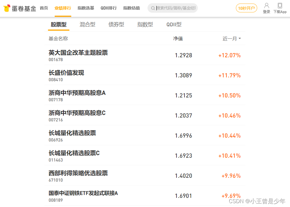 从上面截图的url里可以看出来,作者选择了蛋卷基金这个网站来进行分析,从这个网页里选出优秀的基金(如果想要用其他网站的同学们请修改url地址!)