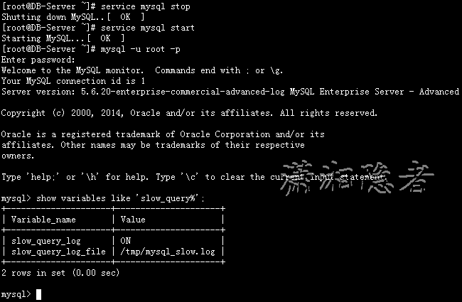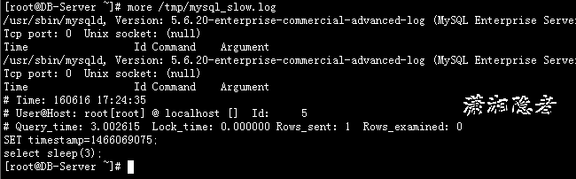 [root@DB-Server ~]# more /tmp/mysql_slow.log
