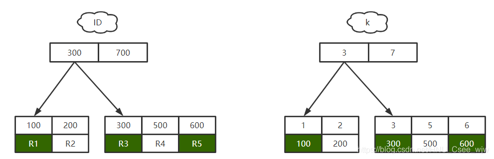 (当然,如果k=5这个记录刚好是这个数据页的最后一个记录,那么要取下一个记录,必须读取下一个数据页,这个操作会稍微复杂一些。但我们计算平均性能差异时,仍可以认为这个操作成本对于现在的CPU来说可以忽略不计。)